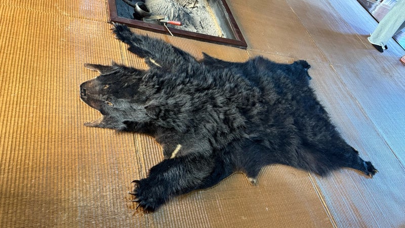 くまの皮乗ってみていいよって言われたけど乗れませんでした。